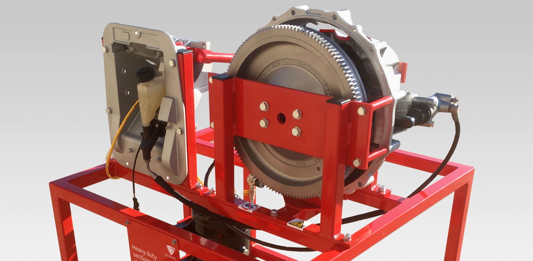 The Heavy Duty Sectioned Clutch Trainer (787-01) is a fully-sectioned and operational clutch trainer that shows internal workings and components.