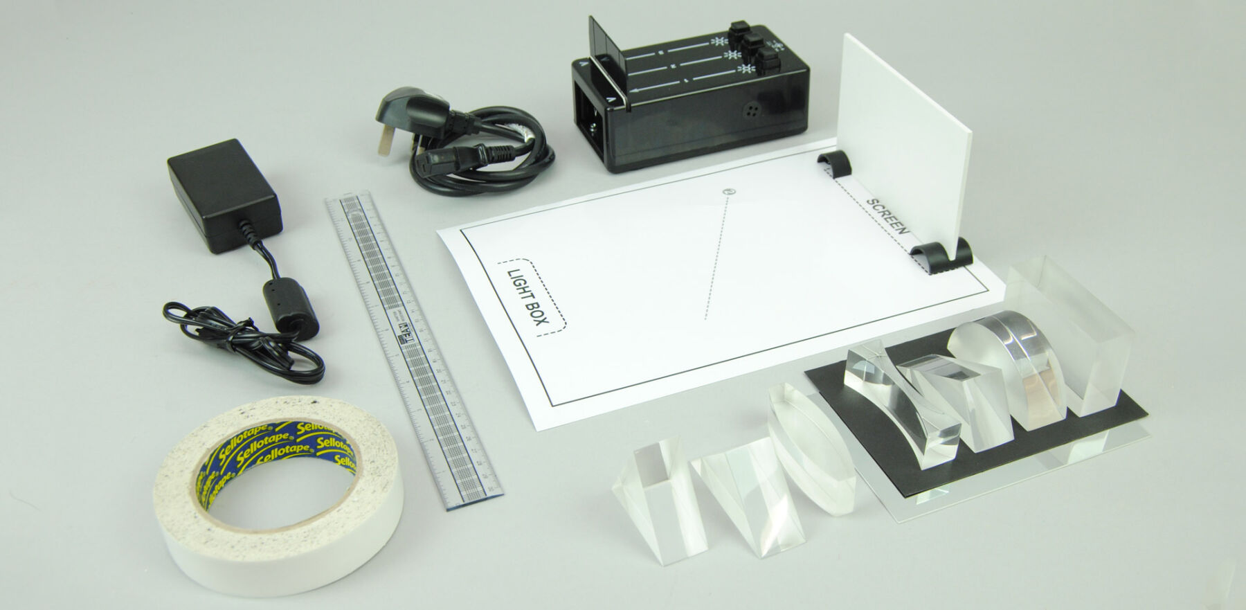 The Light Rays Kit (511-07) provides a box with three light beams that can be independently switched on or off.