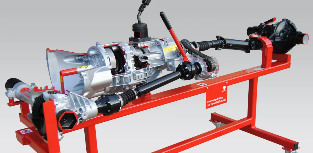 The Four Wheel Drive Sectioned Drivetrain (786-02) is a fully-sectioned trainer allows the instructor to demonstrate the internal operation of a complete 4×4 drivetrain.