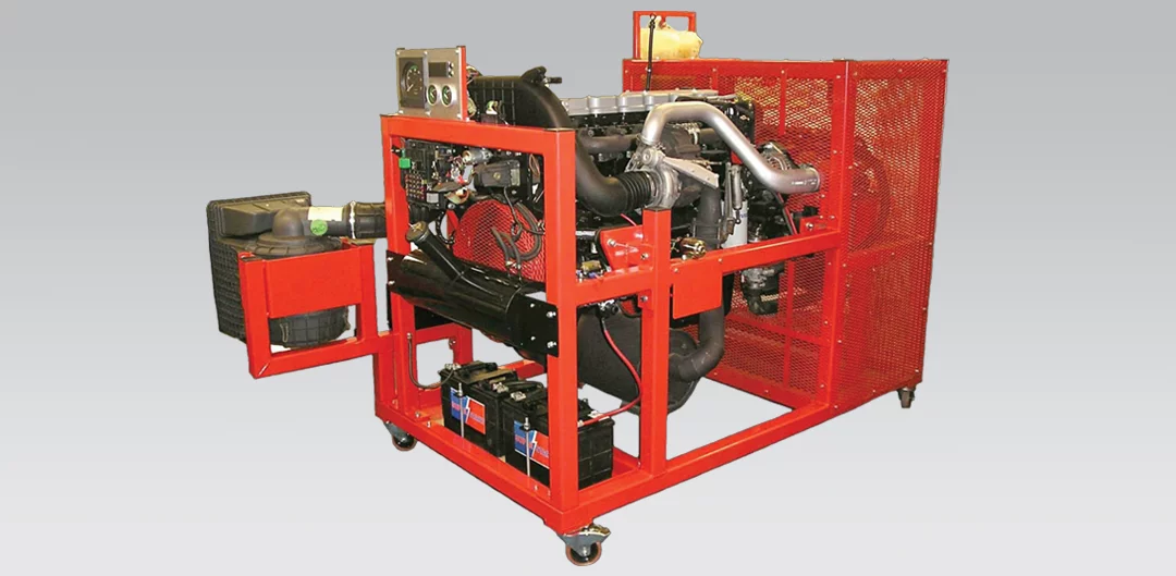 This trainer provides the instructor with a complete working 6-cylinder heavy vehicle diesel engine with a Bosch EDC engine management system and high-pressure common rail fuel injection system. The trainer is mounted on a moveable, heavy-duty steel frame. The system comprises all the elements that control the air-fuel ratio, fuel injection, and exhaust emissions, together with the Bosch ECU and all the sensors and actuators associated with the control system.
