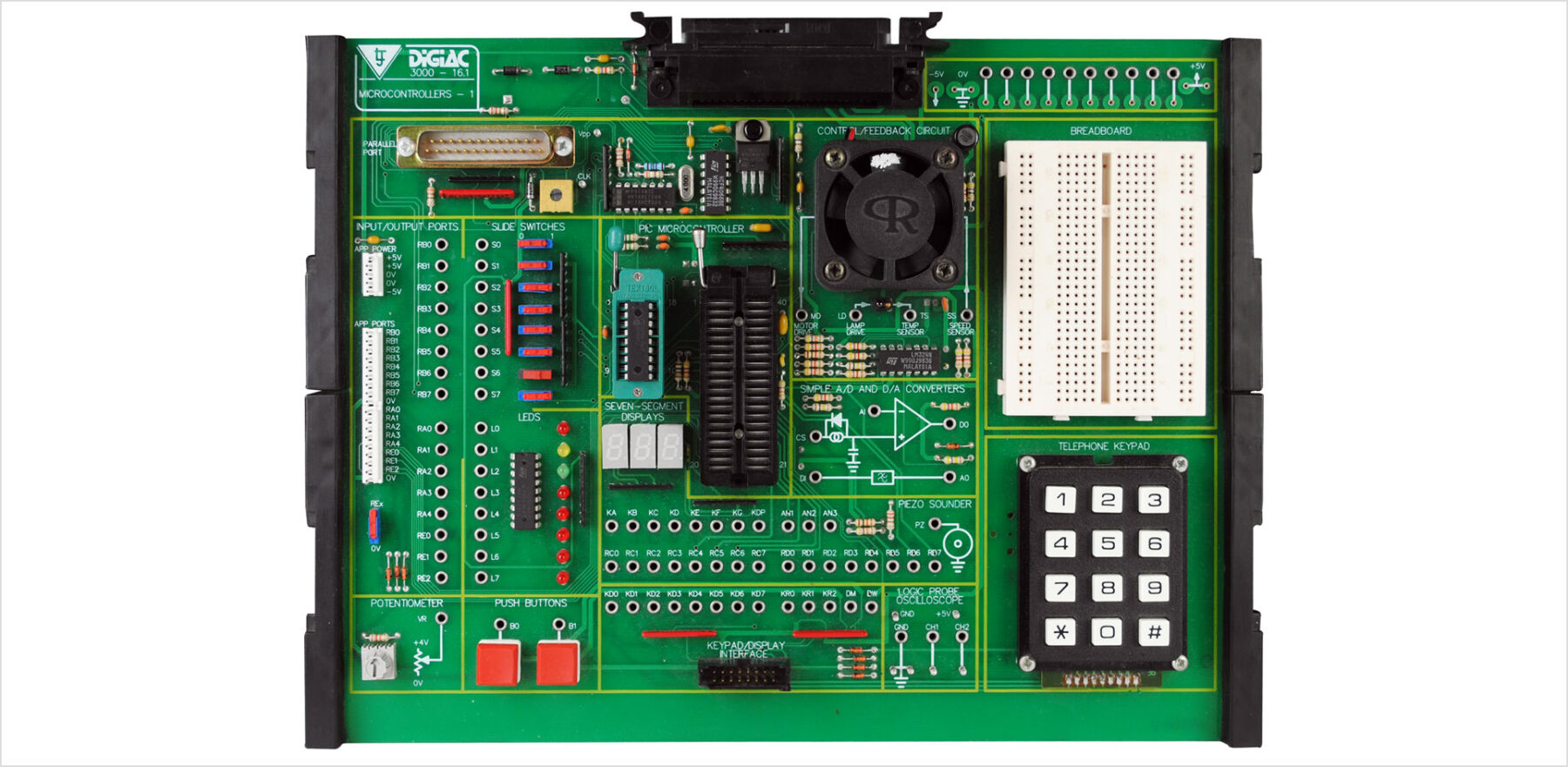 The PIC 3000 Microcontroller Study Module (316-01) is designed to introduce students to PIC Microcontrollers and their applications through a wide range of programming activities. Students can select from a range of inserted faults to develop electronic diagnostic and faultfinding techniques.