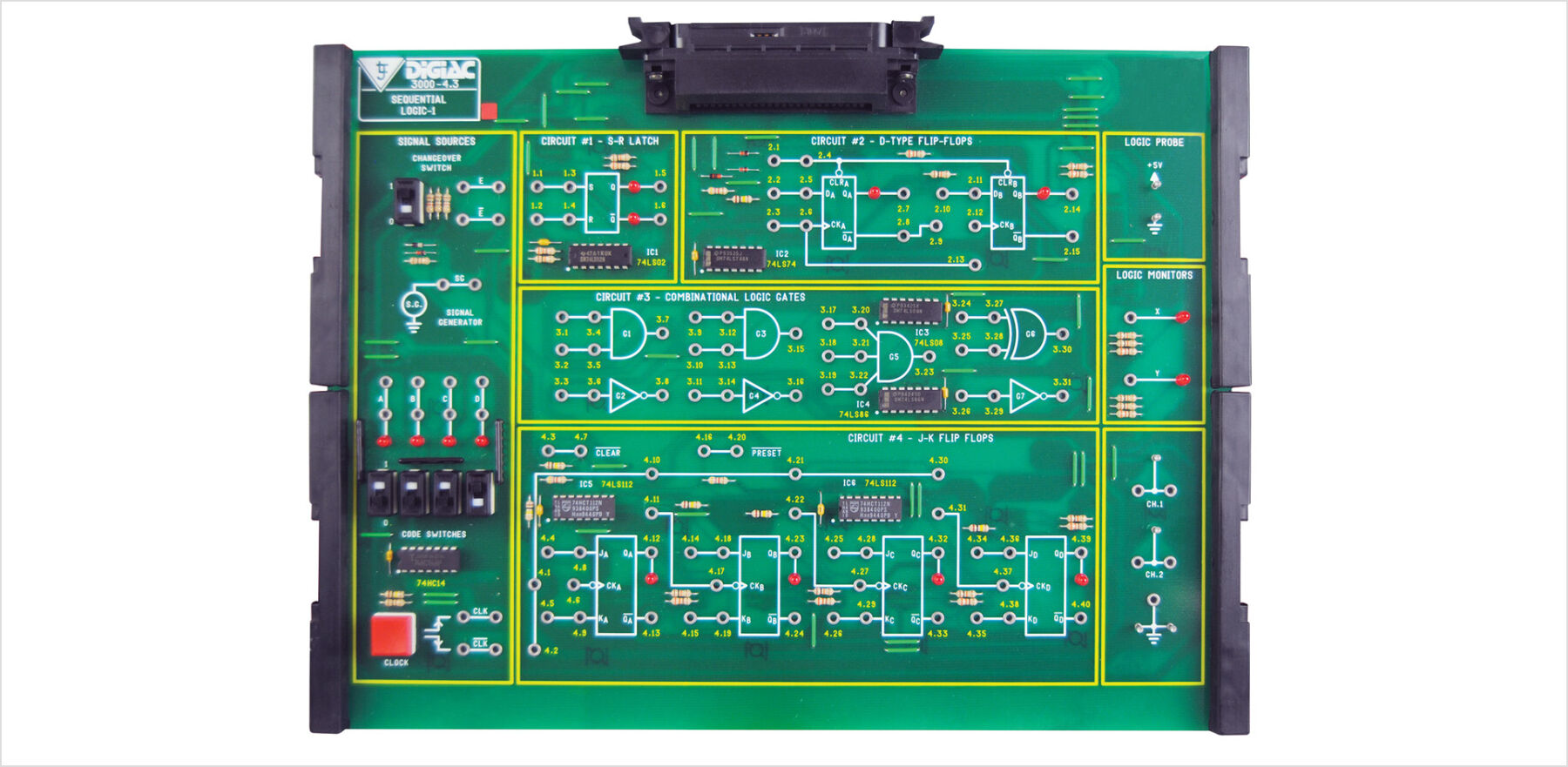The Sequential Logic Study Module (304-43) is supplied with PDF manuals that provide theory materials, practical tasks, faultfinding activities, and technical information.